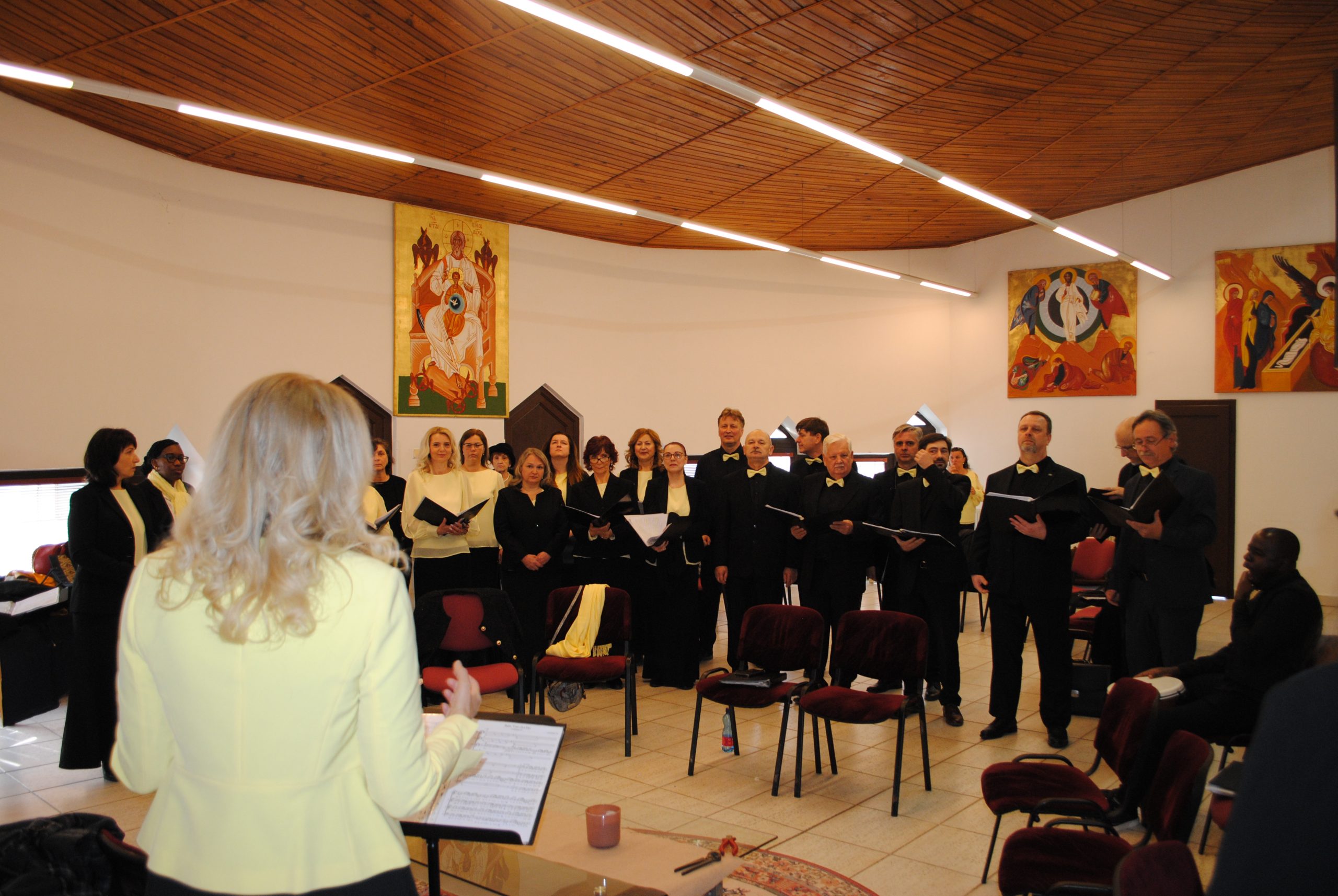 Komorný spevácky zbor Chorus Via Musica z Prešova so svojou usilovnou zbormajsterkou Jana Hudáková počas Novoročného koncertu v Evanjelickom chráme.